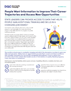 Adult learners looking to enhance their careers deserve meaningful access to data that will help meet their needs—including understanding industry trends, locating high-quality programs in their area, and assessing the full cost of attendance and return on investment of those programs, among others. DQC’s 2024 national poll of adult learners looking to enhance their careers, administered by The Harris Poll, asked individuals who are, were, or are interested in being enrolled in an accredited certificate program how they have used data to explore and select certificate, short-term, and noncredit programs.