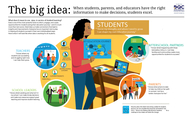 Data is one of the most powerful tools to inform, engage, and create opportunities for students along their education journey—and it‘s much more than test scores. Data helps us make connections that lead to insights and improvements. Everyone has an important role to play in helping all students succeed in their own individualized ways. Here’s what it will look like when data is working for all students.