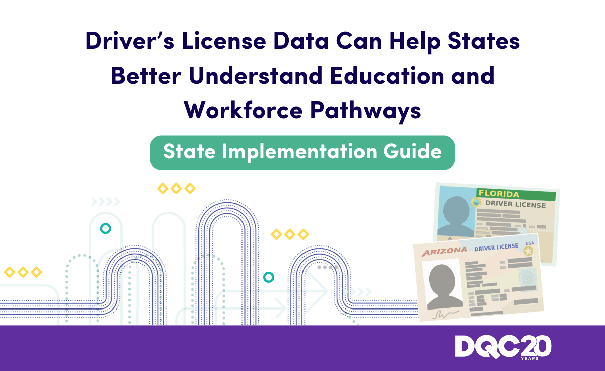 Statewide longitudinal data systems (SLDSs) often rely on personal identifiers to securely link individual-level data across early childhood, K–12, higher education, and the workforce. However, different sectors use different types of personal identifiers which can make accurately connecting records difficult. Driver’s license data offers a single verifiable record that can be used to fill gaps in other records and accurately connect data across sectors, enabling a state to resolve inconsistent data and improve matching and data quality within its SLDS. State leaders are then able to provide higher-quality education-to-workforce information and trend data that empower individuals to make informed decisions and select education and training opportunities that meet their educational, financial, and geographic needs.