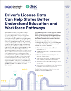 This brief from the Data Quality Campaign and Data Integration Support Center (DISC) at WestEd is intended to help state leaders understand the utility and risk of including driver’s license data in their SLDS matching process and answers a number of related questions.