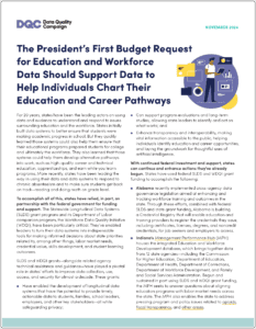 For 20 years, states have been the leading actors on using data and evidence to understand and respond to issues surrounding education and the workforce. Over time, states have continued to invest in data systems and have built them into effective tools for ensuring students have a broader understanding of pathways available to them from education and into the workforce. To accomplish all of this, states have relied, in part, on partnership with the federal government for funding and support. This resource explores how the President’s first budget request should address funding for key programs like the Statewide Longitudinal Data System (SLDS) and Workforce Data Quality Initiative (WDQI) grant programs.