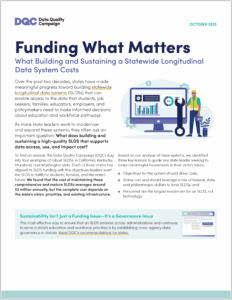 Over the past two decades, states have made meaningful progress toward building statewide longitudinal data systems (SLDSs) that can enable access to the data that people need to make informed decisions about education and workforce pathways. But what does building and sustaining a high-quality SLDS cost? To find an answer, DQC dug into four examples of robust state data systems in California, Kentucky, Maryland, and Washington state.