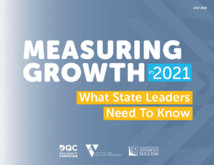 Student academic growth data is the most comprehensive and equitable way to measure student progress and school quality. As states and districts work to reopen for the 2020-21 school year, measuring student growth should remain a priority, especially given anticipated widespread learning losses due to COVID-19. States can and should continue to measure student growth in 2021; to do so, state leaders should start preparing now. This resource from the Data Quality Campaign, Alliance for Excellent Education and Collaborative for Student Success outlines considerations for measuring growth when missing annual assessment data for the prior year, discusses uses of this data, and lays out actions states can take right now to measure growth in 2021.