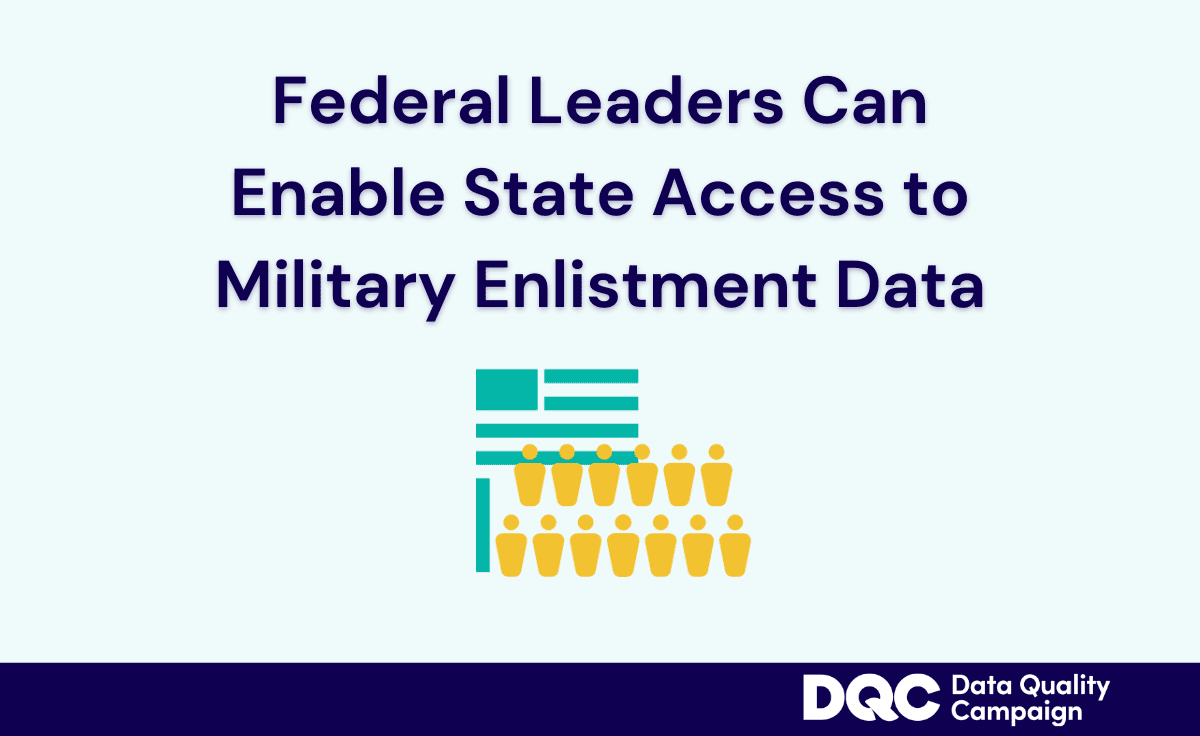 People need access to data to navigate their post-high school options, including joining the armed services. Policymakers to better understand how many students are interested in joining armed services, how many enlist, and how many persist. And educators need to understand how their education programs are preparing students to be eligible to join. States are best positioned to provide this data to audiences that need it, but currently lack systematized access to military enlistment data—resulting in makeshift solutions like surveys that do not provide a complete view of the landscape.