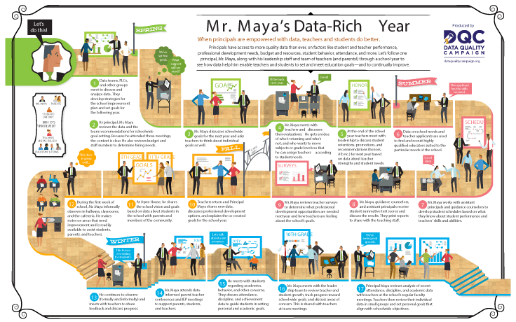 Principals have access to more quality data than ever, on factors like student and teacher performance, professional development needs, budget and resources, student behavior, attendance, and more. Mr. Maya’s Data-Rich Year follows one principal along with his leadership staff and team of teachers (and parents!) through a school year to see how data help him enable teachers and students to set and meet education goals—and to continually improve.