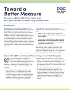This resource is an exploration of the limitations of current economic disadvantage measures and considerations for leaders to improve measurement approaches as they develop long-term solutions.