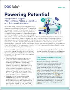 Students face complex transitions from high school to postsecondary education or into the workforce—and they need clear, timely information to navigate these transitions. State data systems that provide tailored, user-friendly insights can bridge information gaps and ensure that students are equipped to navigate their journeys with confidence, and policymakers, education leaders, and direct service providers at all levels have the necessary information to make effective decisions about policies and programs that support them.