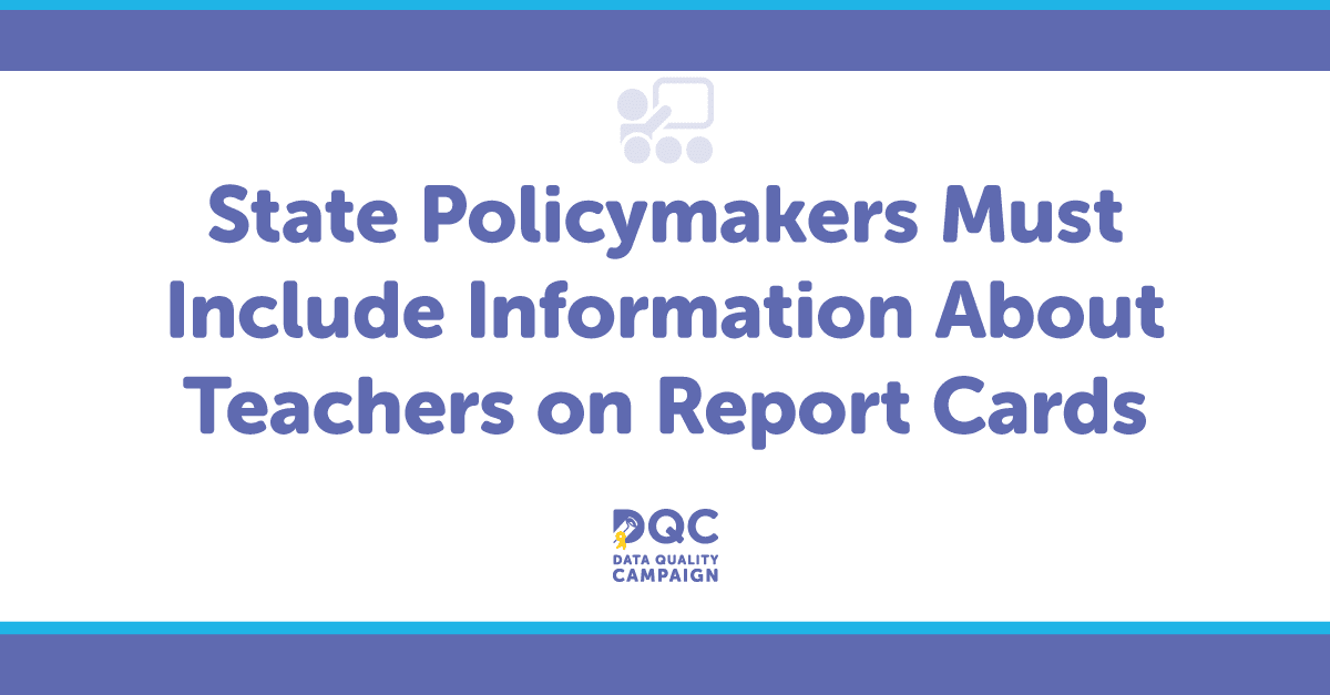 their zip code, deserves access to a good teacher. To make this access a reality, parents and school leaders need information about the teachers in their schools so they can make the best decisions about their students’ education. However, school-level data about teachers is often difficult to find, especially on school report cards, which are a state’s most prominent public-facing resource on school quality. DQC’s fact sheet shows how state leaders must change this by sharing and communicating meaningful data that makes sense and is actionable for families and communities.