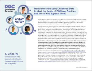 Better data is critical to improving the early childhood ecosystem. This resource is meant to help states understand the return on investment of improving their early childhood data capacity, provide guidance about how to make the improvements they need, and support them in laying a strong foundation for connecting robust early childhood data with statewide longitudinal data systems.